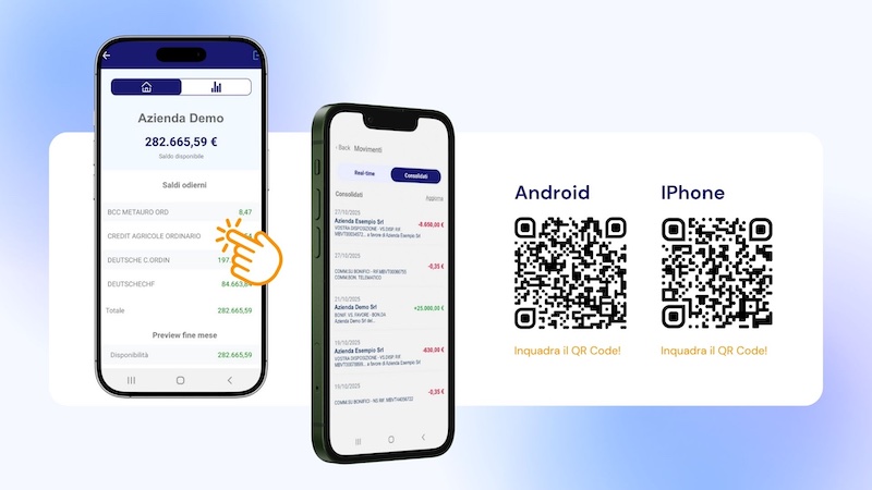 Come visto, l’App Cash Flow consente di monitorare la gestione finanziaria dell’azienda direttamente dallo smartphone, offrendo una consultazione immediata di saldi, disponibilità bancarie e flussi di cassa.